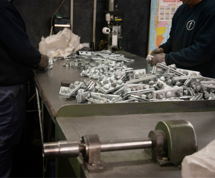 Toda la gama de fabricación de herrajes requeridos para la construcción y tendido de líneas aéreas con portante y de fibra óptica, centros de manzana, tendidos rurales, seguridad de amplificadores, etc., que esta industria necesita: prensacables, bulones, abrazaderas, torniquetas, barras para anclas, anclas, etc. como así también la fabricación de columnas y equipos antirrobo especiales que hemos diseñado para este rubro. Punto a destacar